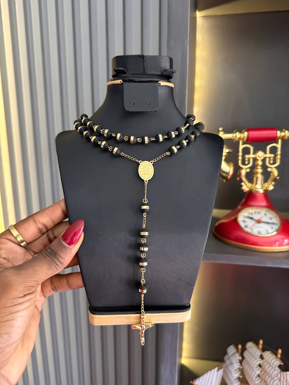 Step into effortless elegance with the Imperial black Necklace — a bold statement piece designed for those who appreciate style with meaning. Crafted with sleek black beads and gold-toned accents, this layered chain delivers a clean, modern look that stands out in any setting.